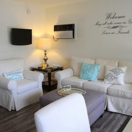 These apartments are perfect for a more private, still laid-back, beachside vacation. They offer cozy king-size beds, queen-size sleeper sofas, comfortable sofas and ottomans in the living area, fully equipped kitchens for all your cooking needs, a dining area, bathrooms with walk-in showers and plenty of towels, flat screen TVs in both the living rooms and bedrooms, walk-in closets with safes, hairdryers, irons with ironing boards. Enjoy partial ocean views from your private balconies.